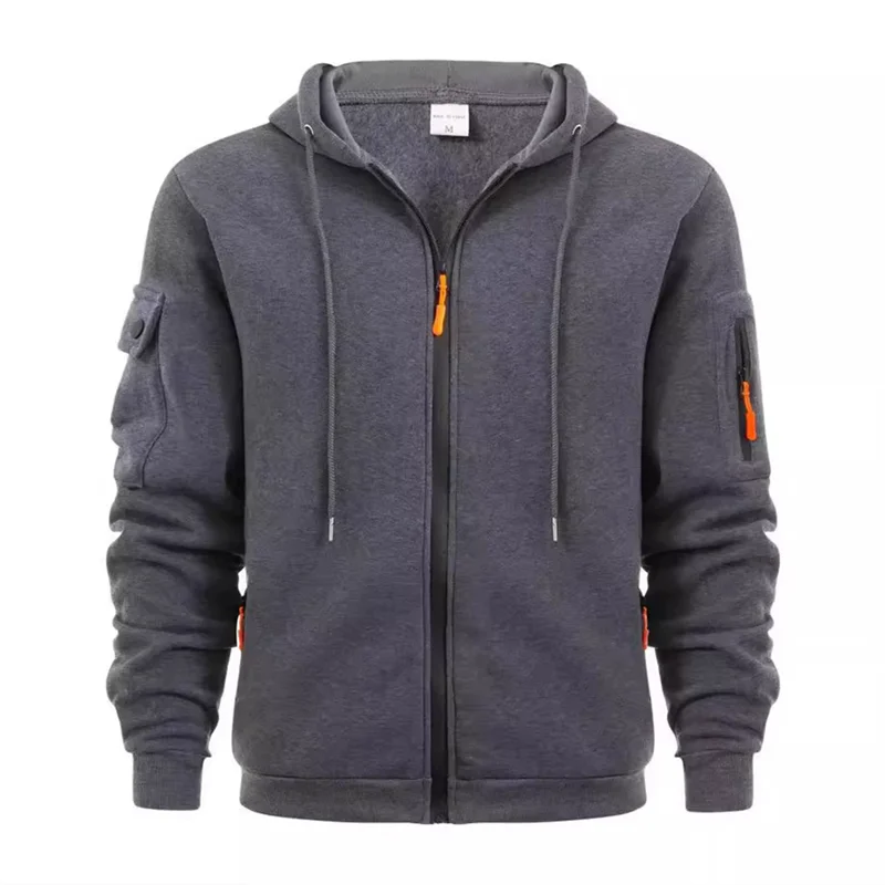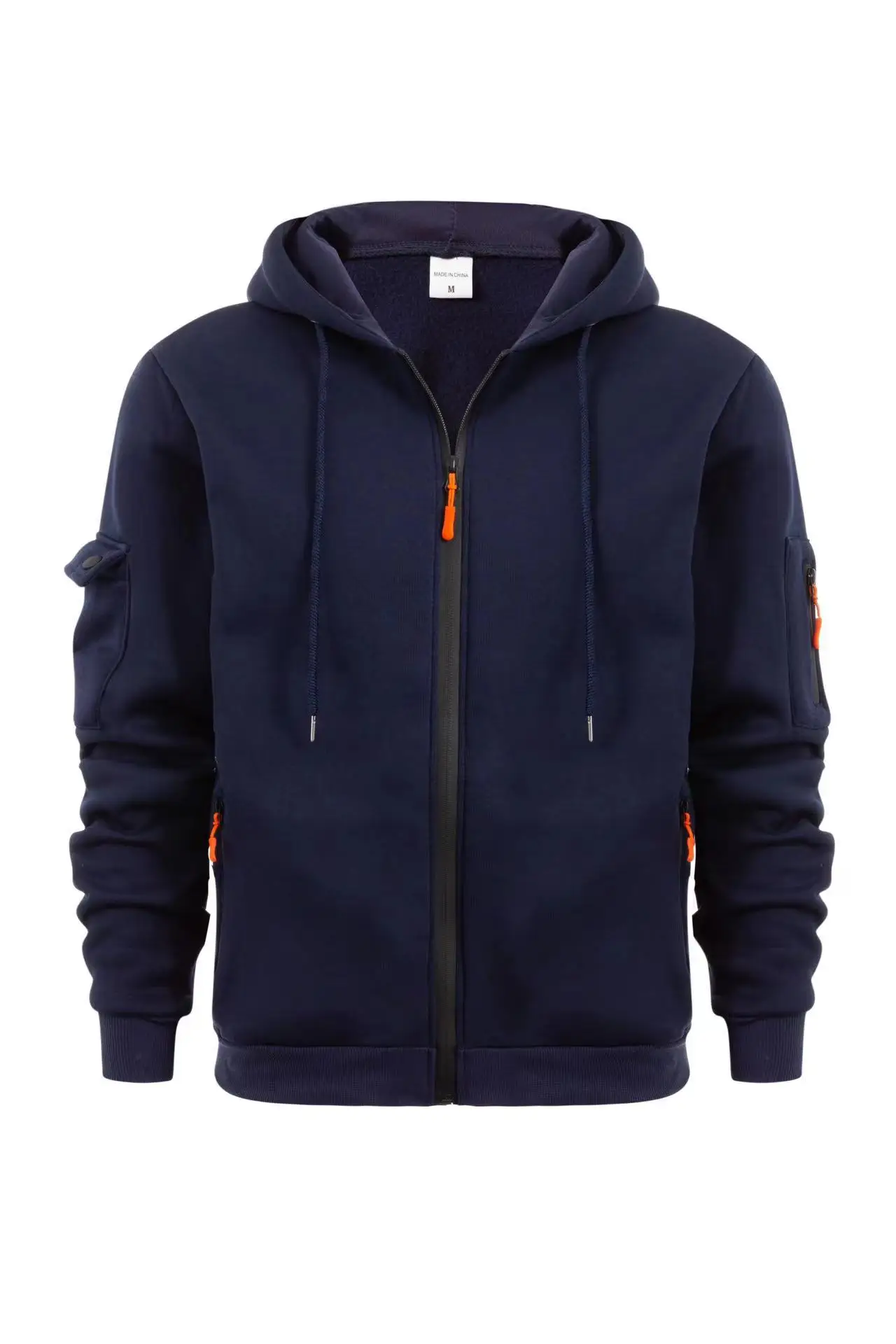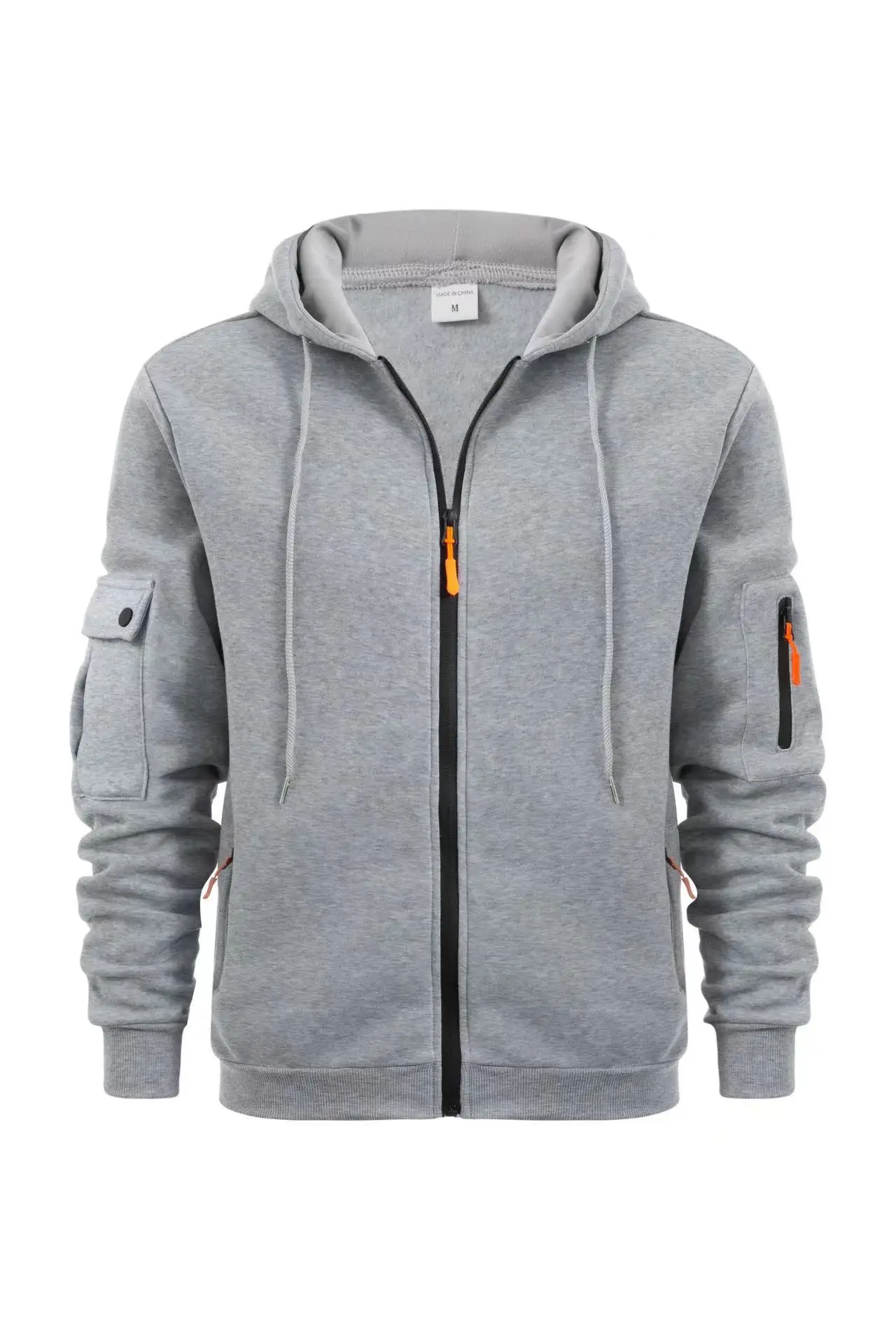 Spring Autumn Hooded Hoodies Men Fashion Zipper Pocket Sports Cardigan Outwear Male Solid Casual Jogging Sweatshirt Jackets Coat