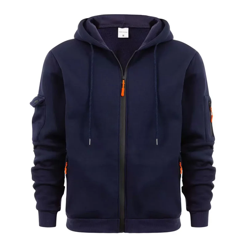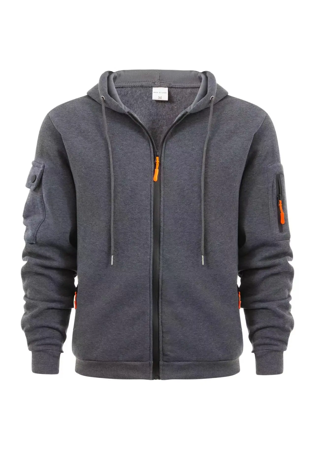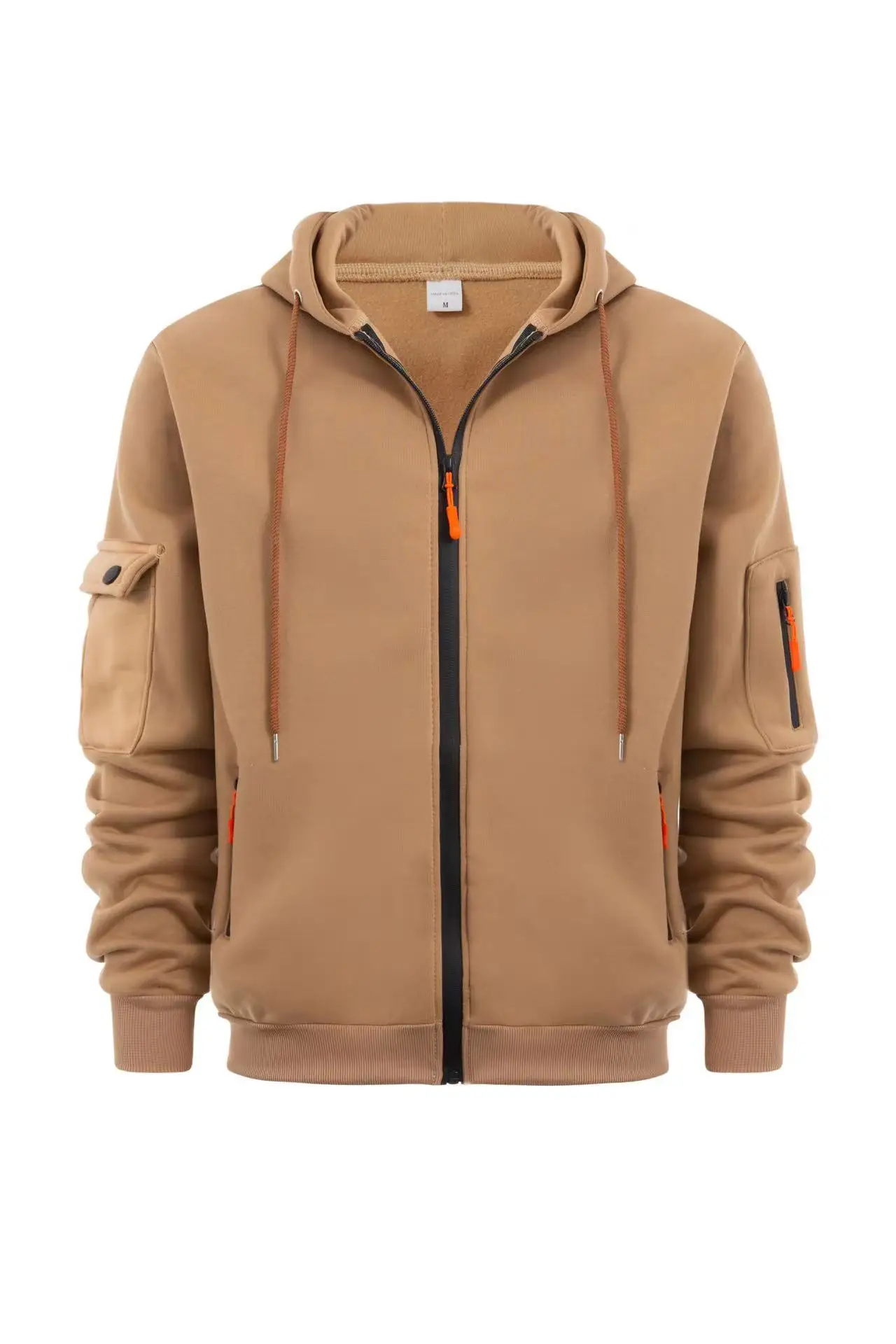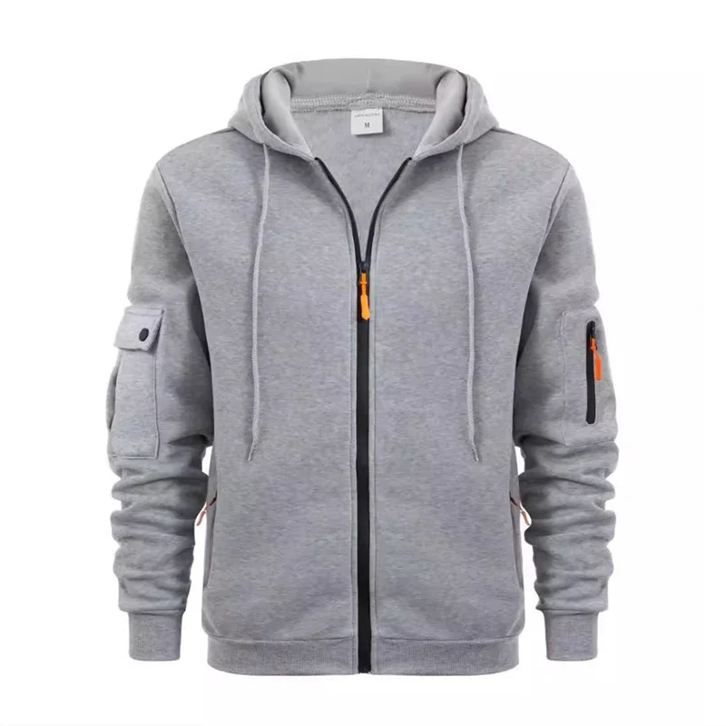 Spring Autumn Hooded Hoodies Men Fashion Zipper Pocket Sports Cardigan Outwear Male Solid Casual Jogging Sweatshirt Jackets Coat